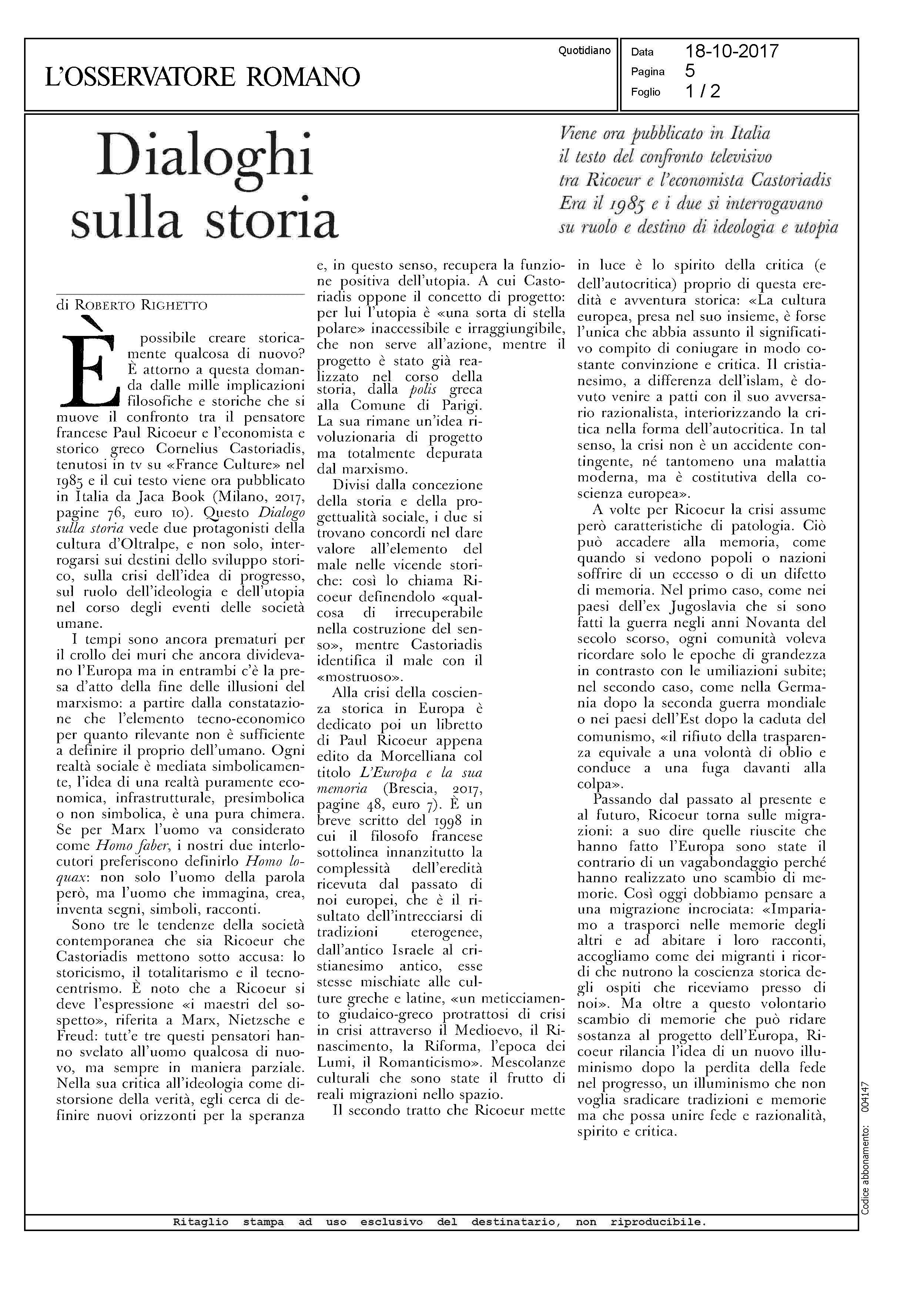 Recensione sull'OSSERVATORE ROMANO (18/10/2017)