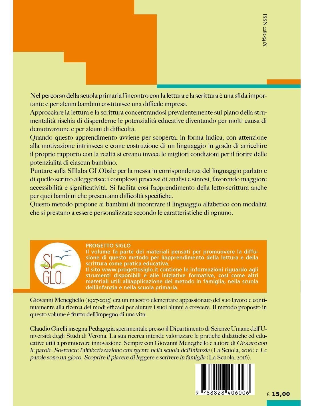 Approcciare la lettura e la scrittura concentrandosi prevalentemente sul piano della strumentalità rischia di disperderne le potenzialità educative diventando per molti causa di demotivazione e per alcuni di difficoltà. Quando questo apprendimento avviene per scoperta, in forma ludica, con attenzione alla motivazione intrinseca e come costruzione di un linguaggio in grado di arricchire il proprio rapporto con la realtà si creano invece le migliori condizioni per il fiorire delle potenzialità di ciascun bambino. Puntare sulla SIllaba GLObale per la messa in corrispondenza del linguaggio parlato e di quello scritto alleggerisce i complessi processi di analisi e sintesi, favorendo maggiore accessibilità e significatività. Si facilita così l’apprendimento della letto-scrittura anche per quei bambini che presentano difficoltà specifiche. Questo metodo propone ai bambini di incontrare il linguaggio alfabetico con modalità che si prestano a essere personalizzate secondo le caratteristiche di ognuno.