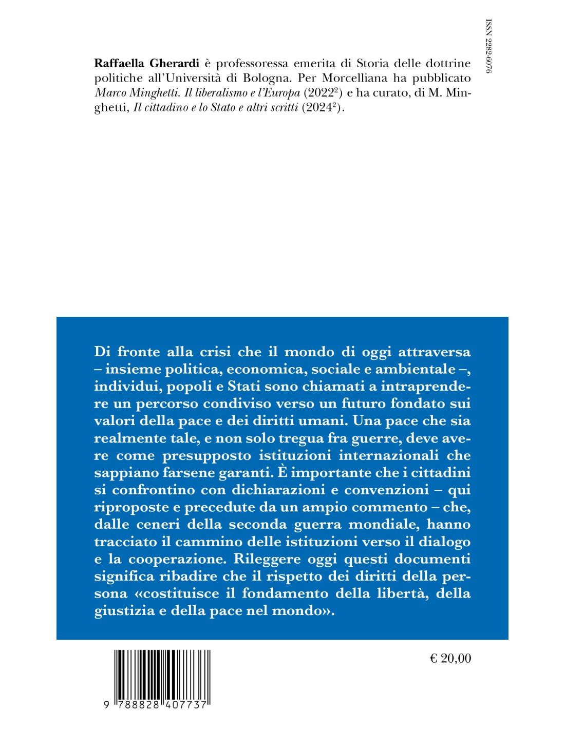 Raffaella Gherardi è professoressa emerita di Storia delle dottrine politiche all’Università di Bologna. Per Morcelliana ha pubblicato Marco Minghetti. Il liberalismo e l’Europa (2022 2ed.) e ha curato, di M. Minghetti, Il cittadino e lo Stato e altri scritti (2024 2ed.).