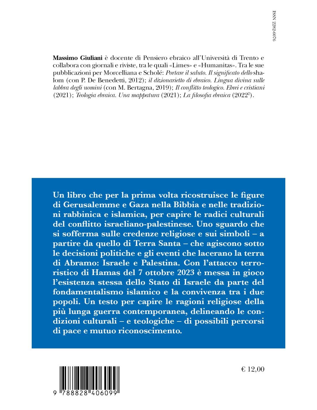 Un libro che per la prima volta ricostruisce le figure di Gerusalemme e Gaza nella Bibbia e nelle tradizioni rabbinica e islamica, per capire le radici culturali del conflitto israeliano-palestinese. Uno sguardo che si sofferma sui simboli e le credenze religiose – a partire dal concetto di Terra Santa – che agiscono sotto le decisioni politiche e gli eventi che lacerano la terra di Abramo: Israele e Palestina. Con l’attacco terroristico di Hamas del 7 ottobre 2023 è messa in gioco l’esistenza stessa dello Stato di Israele da parte del fondamentalismo islamico e la convivenza tra i due popoli. Un testo per capire le ragioni religiose della più lunga guerra contemporanea, delineando le condizioni culturali – e teologiche – di possibili percorsi di pace e mutuo riconoscimento.