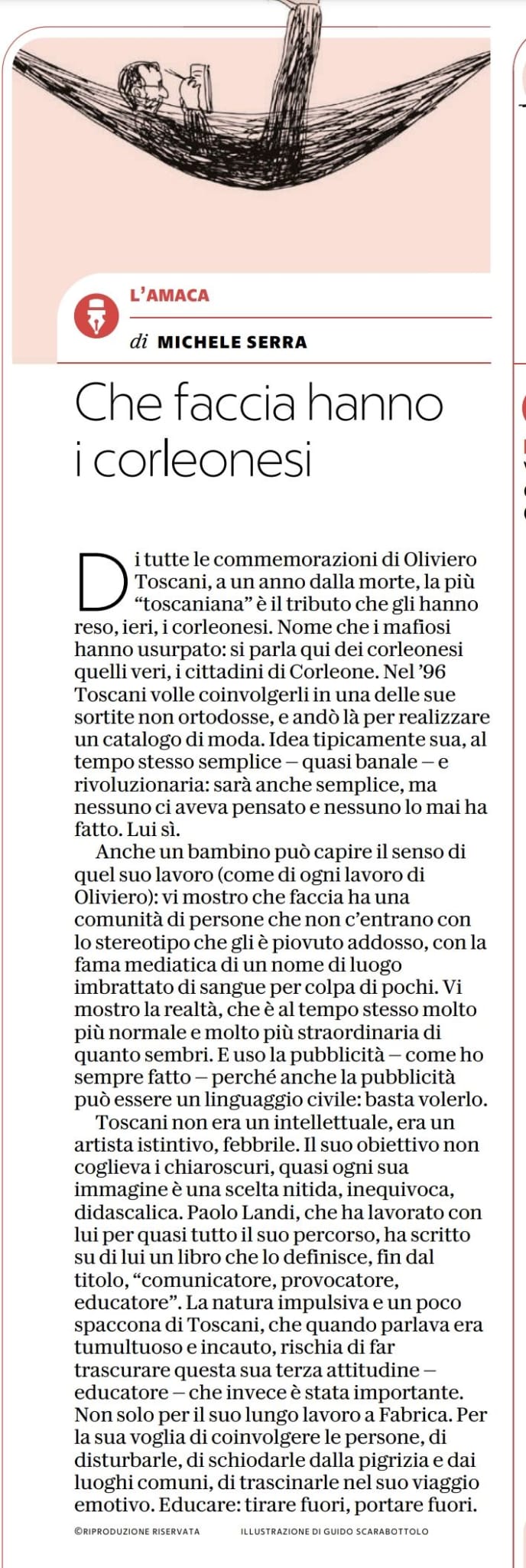 Oliviero Toscani (1942-2025) non era in senso stretto né un educatore, né un provocatore né un comunicatore, ma nel suo lavoro ha attraversato queste tre dimensioni con una carica rivoluzionaria. Come educatore ha trasmesso conoscenza attraverso la forza delle immagini, senza imporre verità ma incoraggiando il pensiero critico. Come provocatore ha scardinato certezze, mettendo in discussione i codici della pubblicità e trasformandola in uno strumento di riflessione sociale. E come comunicatore ha saputo tradurre idee complesse in immagini immediate e universali. Toscani ha usato le sue campagne per smascherare le contraddizioni del consumismo e della società, facendo della fotografia uno strumento di critica, consapevolezza, cambiamento. Paolo Landi, suo amico e collaboratore per molti anni, lo ricorda in questo racconto lungo: un primo tentativo di collocare criticamente una figura spesso fraintesa, offrendo al contempo una riflessione sul mutamento della cultura industriale alla fine del secolo scorso, preludio ai grandi cambiamenti introdotti dall’era digitale.